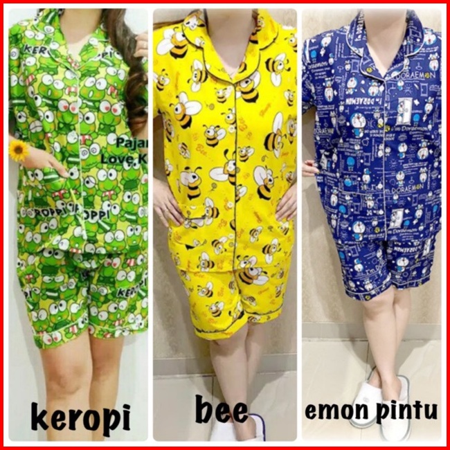 Stelan Baju Tidur Piyama Hp Celana Pendek Katun Jepang