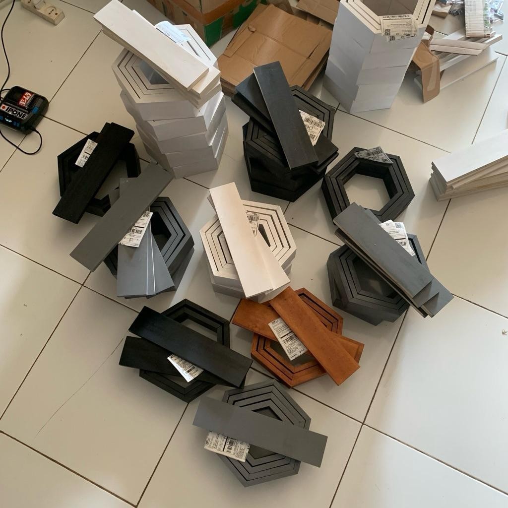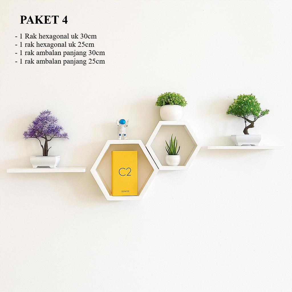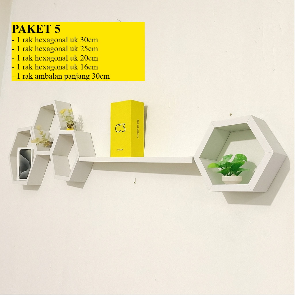 Rak hexagonal dinding hexagonal 1set ambalan hiasan dinding rak hexagonal estetik kayu pajangan kayu