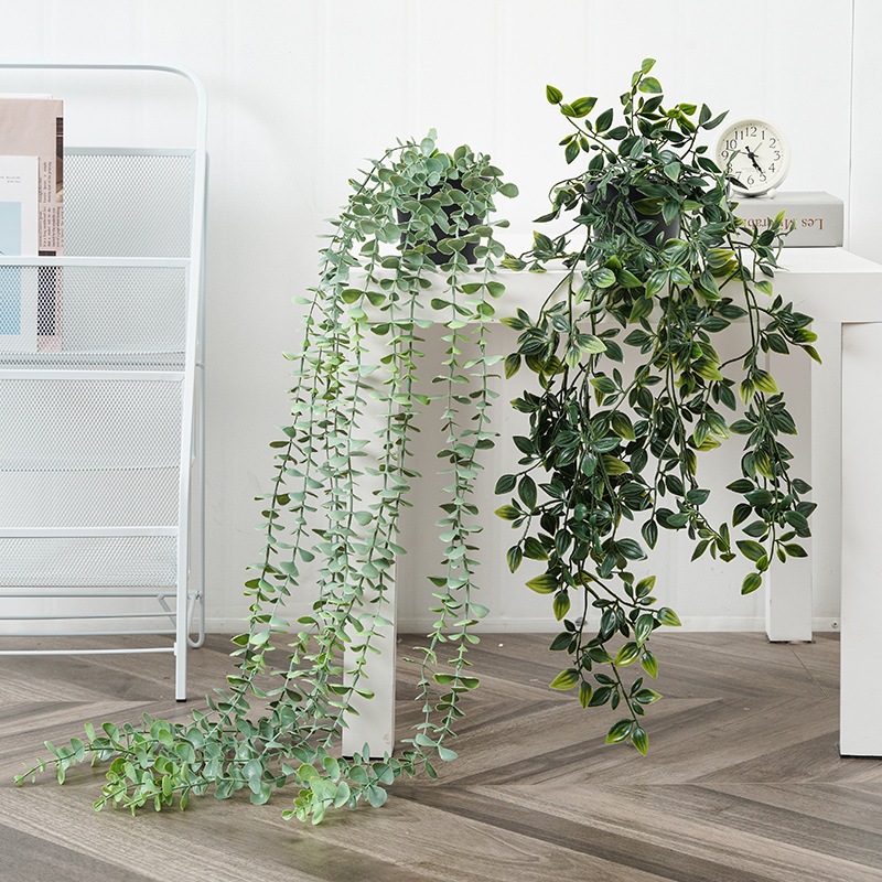 Artificial Hanging Plants with Pot Tanaman Gantung Dinding Buatan Dekorasi Bunga Daun Hijau Dekorasi Rumah Bonsai