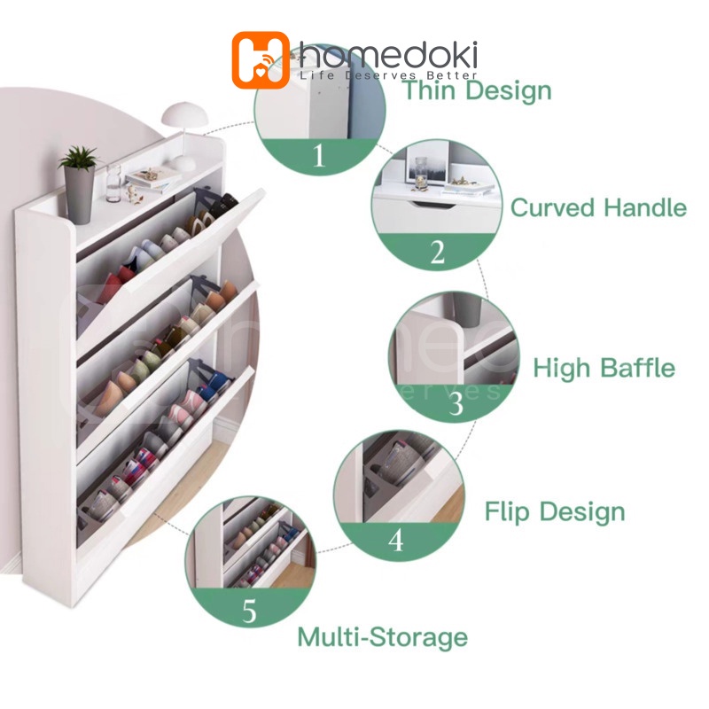 Homedoki Lemari Sepatu/Rak Sepatu/Rak Sepatu Susun Tertutup/Lemari Sepatu Minimalis/Rak Sepatu Kayu