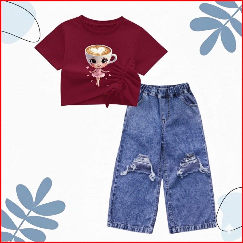 Setelan Croptop Dan Kulot Jeans Sobek Anak Usia 1-10 Tahun