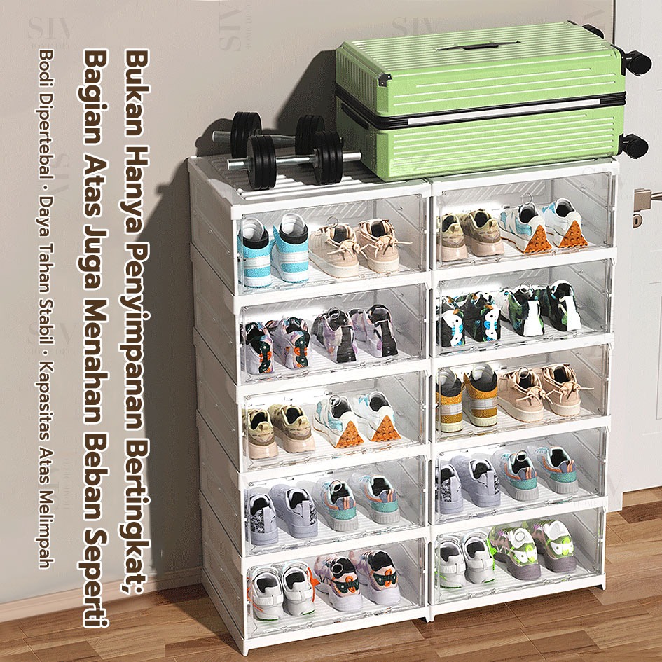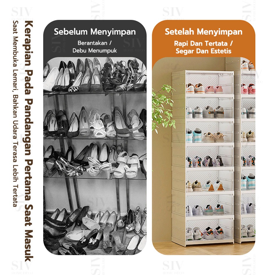 [Bebas Instalasi] SIV Rak Sepatu Lipat Susun Lemari Sepatu Plastik Tertutup Kotak Sepatu Transparan