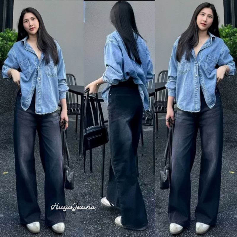 [ UNISEX ] Celana Jeans Whisker Gombrong Highwaist Baggy Pants Hangover Wid Leg Oversize Korean Style Terlaris