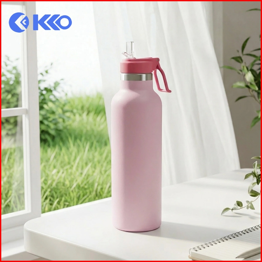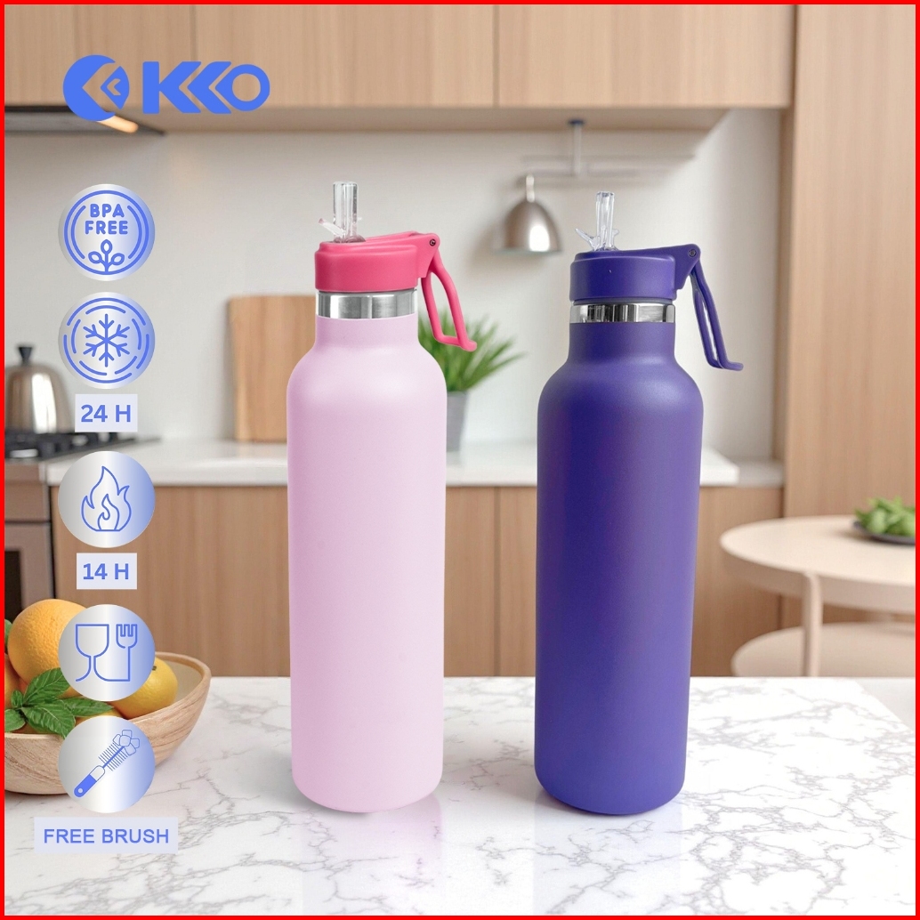 Kko - Kc05 750ml Double Insulated Tumbler Botol Minum Stainless Steel Straw Sipper Flip Top Cup Holder Compatible Handle