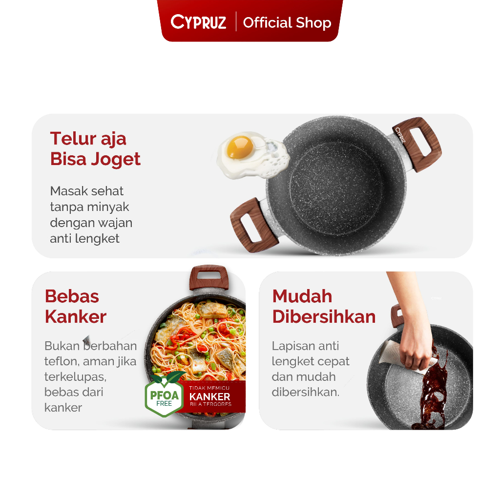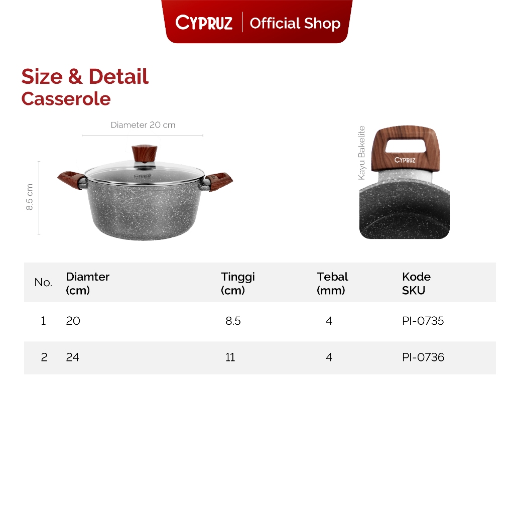 Cypruz Casserole Pan Pot Marble Series Panci Anti Lengket Dengan Tutup