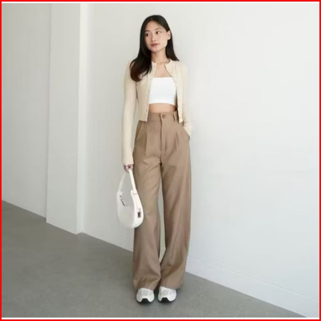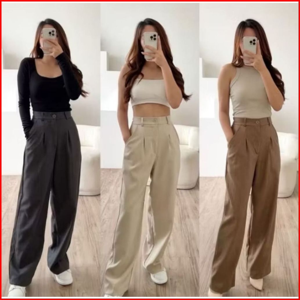 Viona Pants Celana Highwaist Wanita Celana Panjang Loose Pants Kulot Anti Kusut Celana High Waist Trouser Wanita