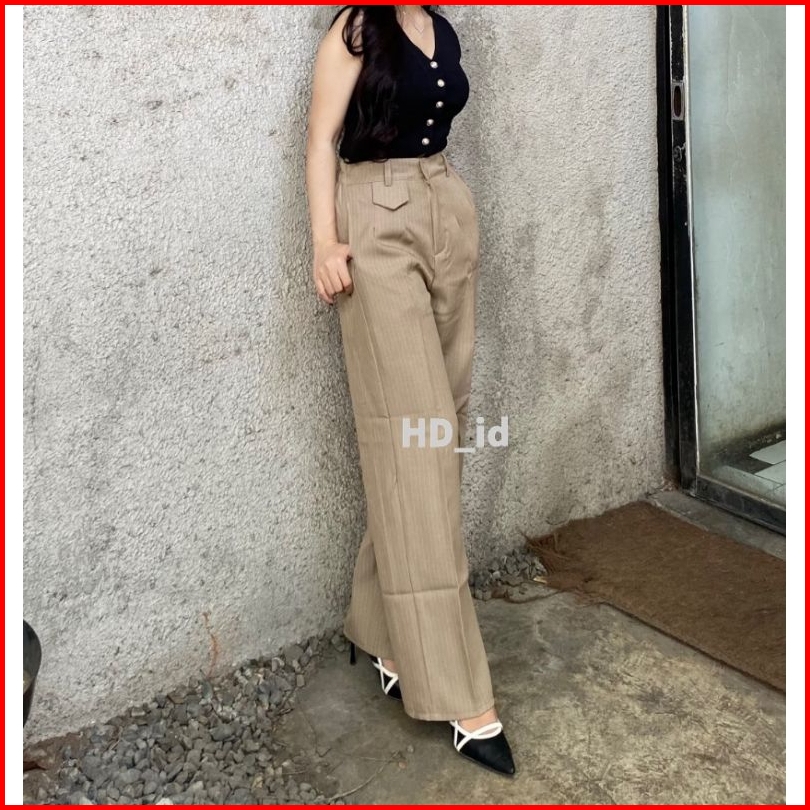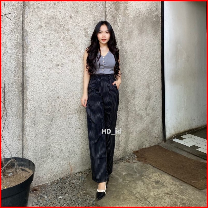 Hd Id - Oro Pants Stripe Bangkok - Celana Anti Kusut - Celana Panjang Highwaist