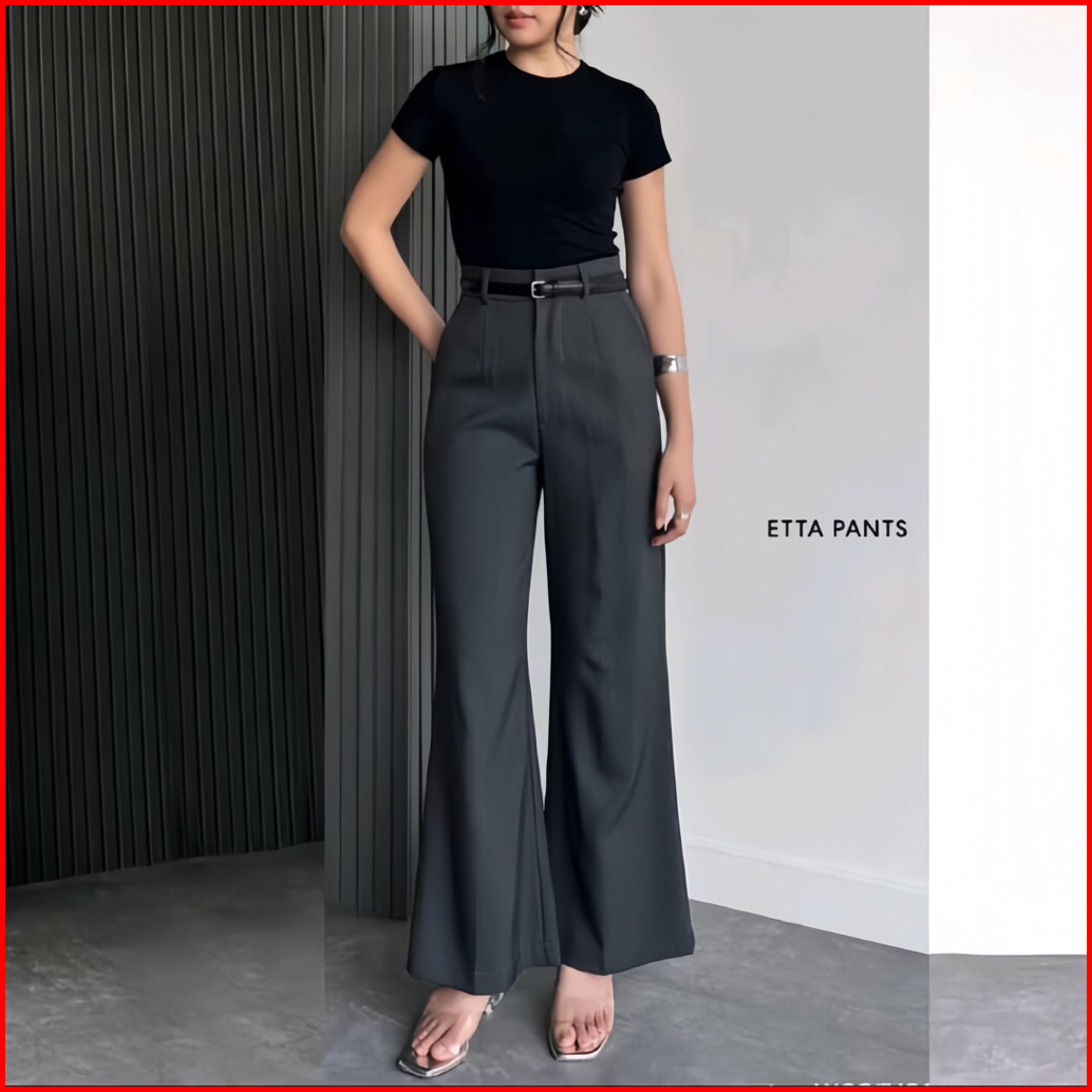 Etta Pants Highwaist Celana Panjang Wanita Loose Pants Trousers Fit Flare Anti Kusut