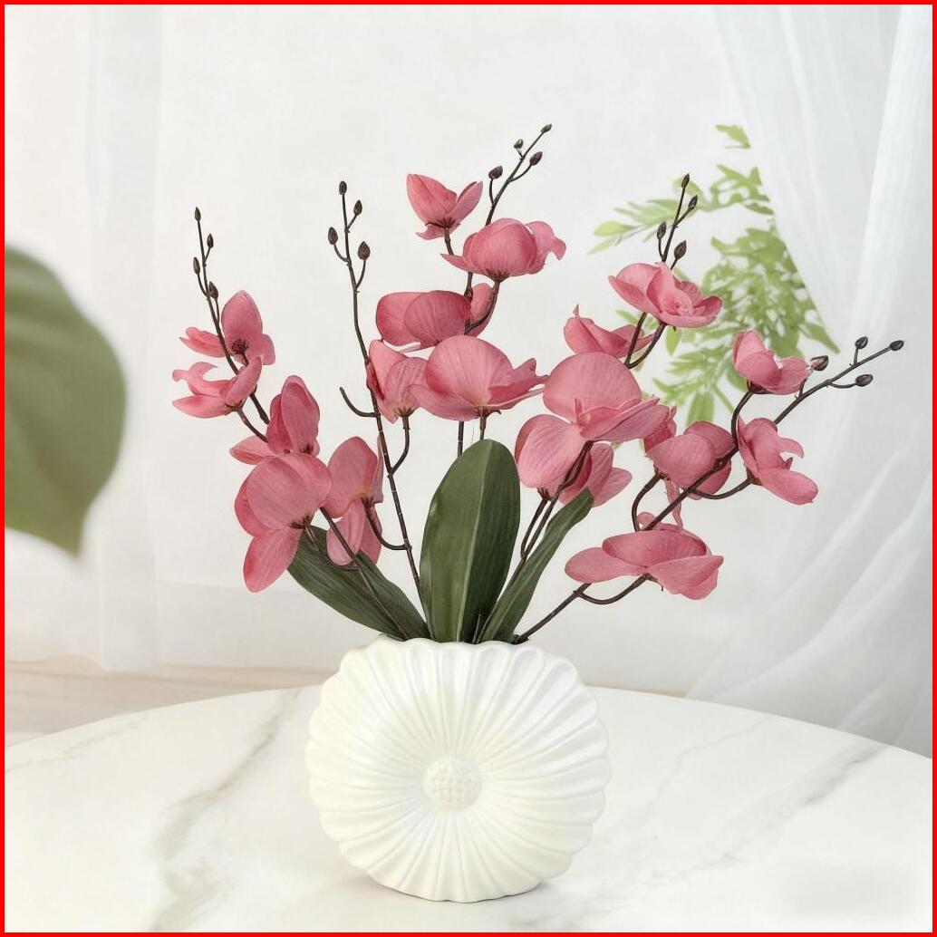 Paket Bunga Anggrek Tiruan 5 Cabang Baru Vas Dekorasi Ruang Tamu Pernikahan