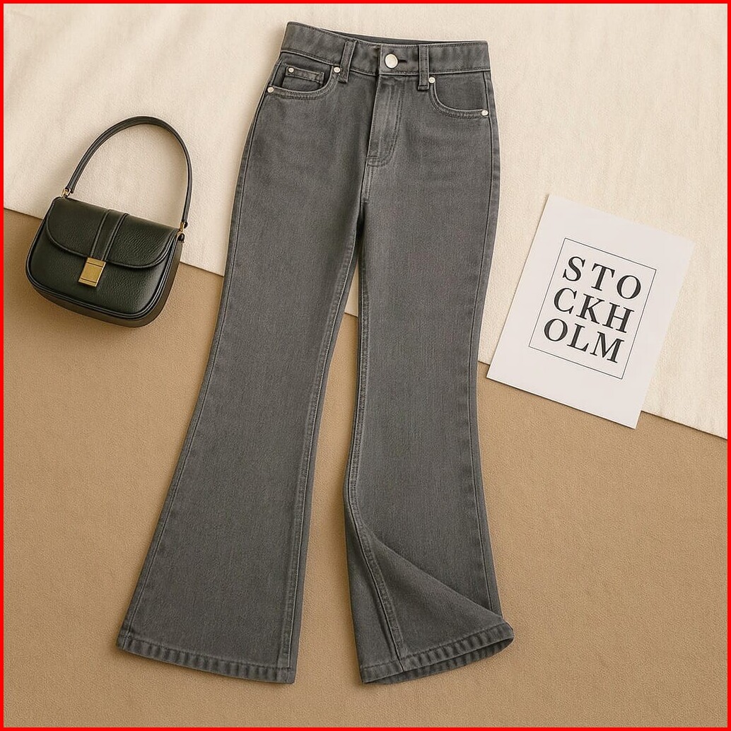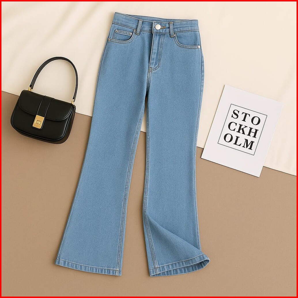 Belva Celana Panjang Jeans Cutbray Highwaist Remaja Dewasa Bahan Stretch Tebal Polos Korean Style