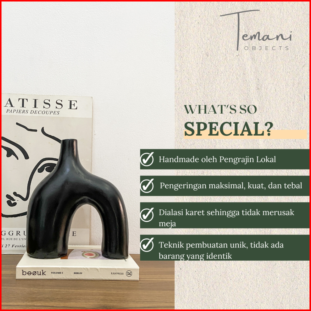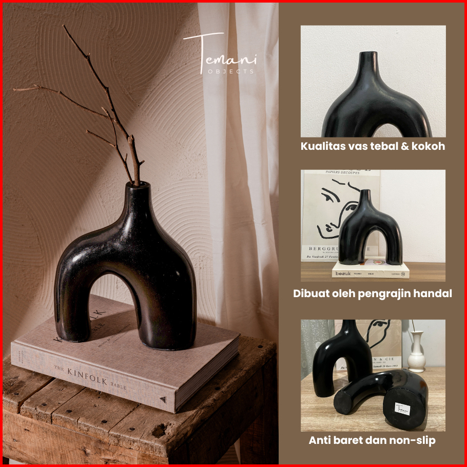 Temani Objects - Lanca Vas Vase Bunga Cantik Dekorasi Bunga Estetik Nordic Vase Handmade Minimalis Vas Hitam Hiasan Ruma