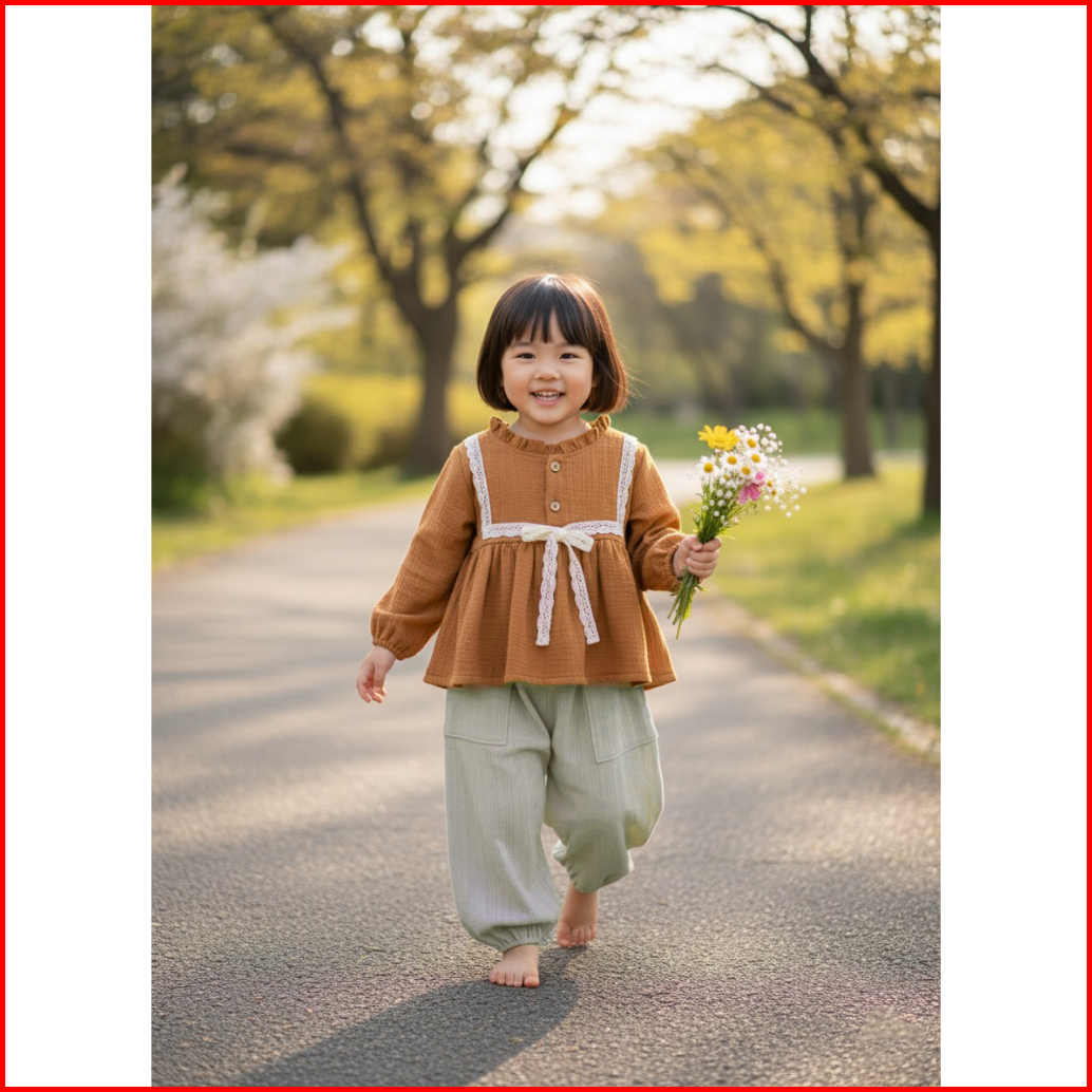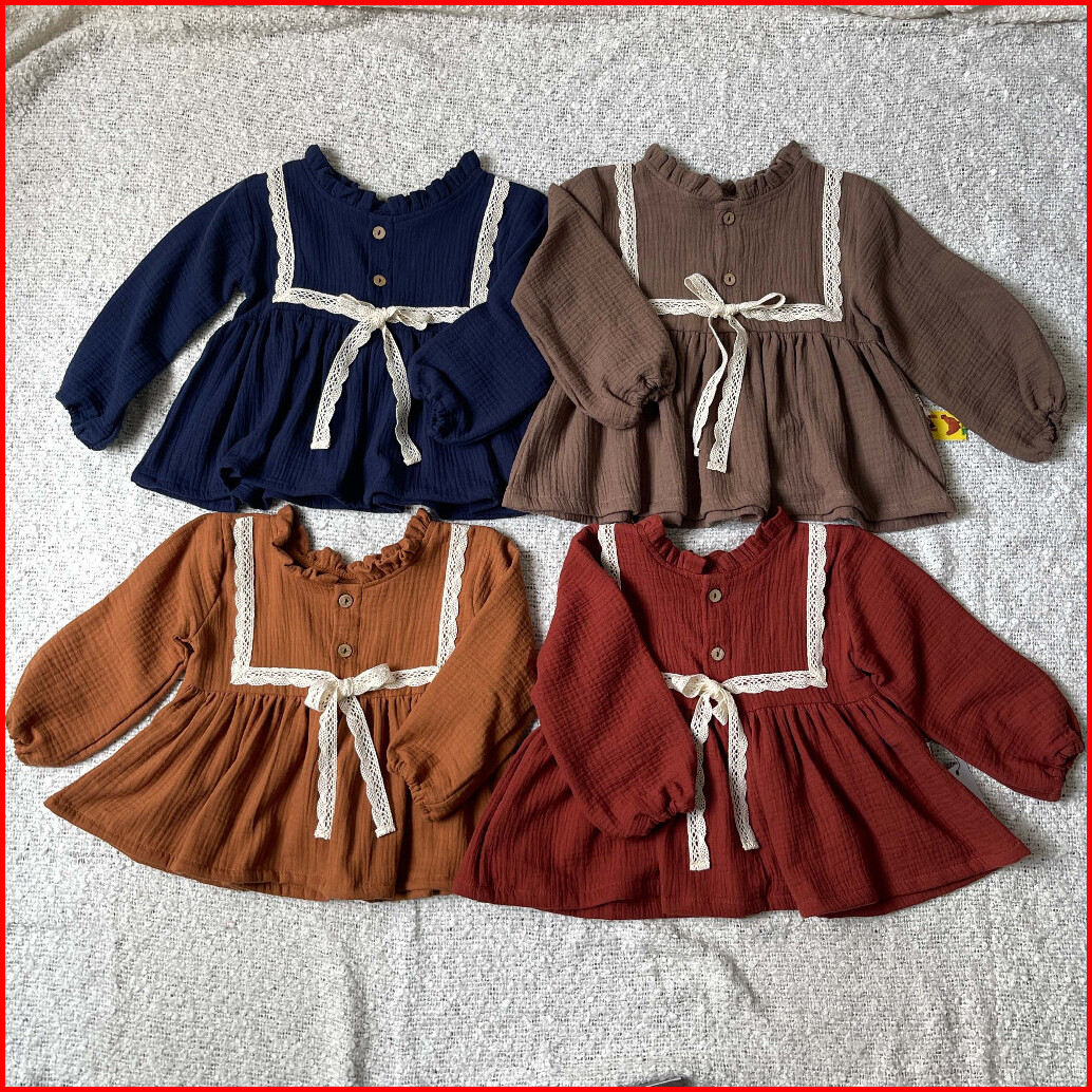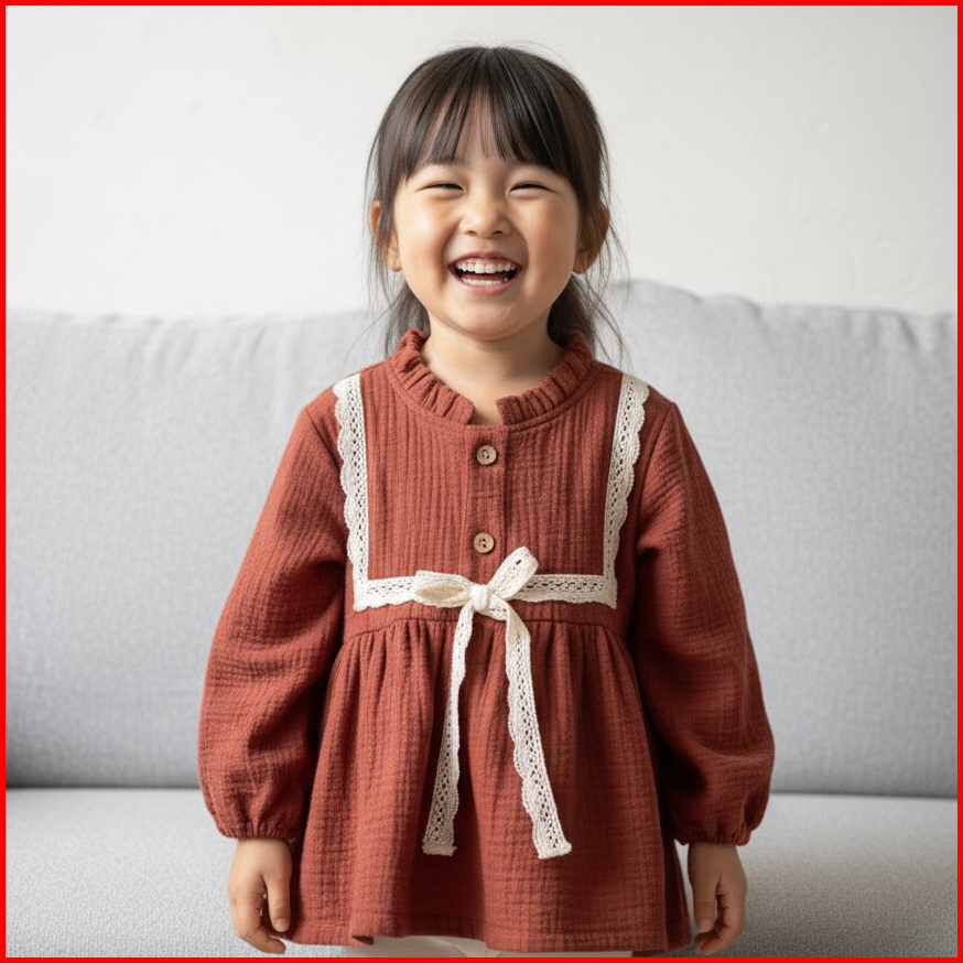 Miya Atasan Anak Lengan Panjang Bahan Cotton Gauze Muslin Renda Pita