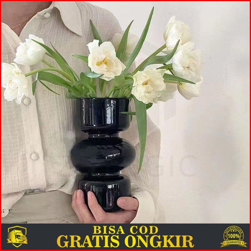 Vas Bunga Kaca Elegan Bottle Vase Flower Desain Tabung Unik Pot Home