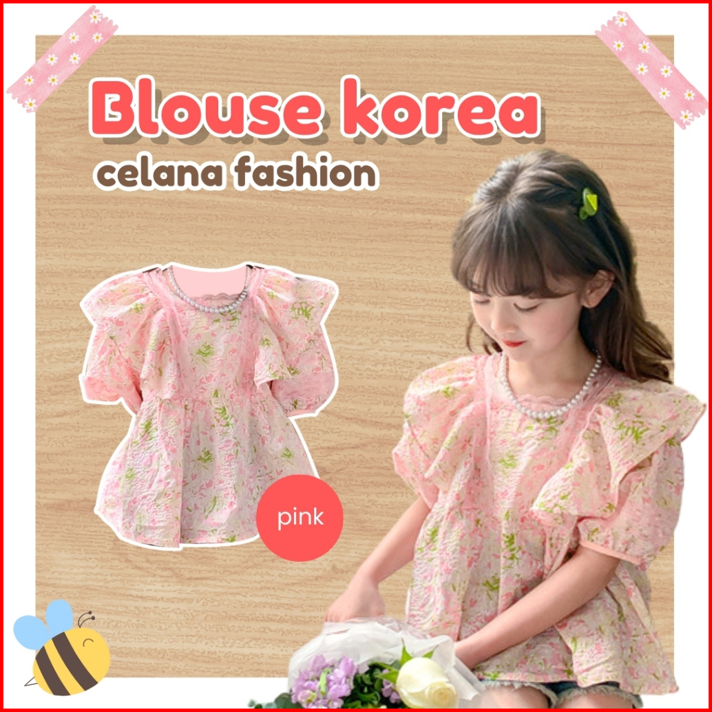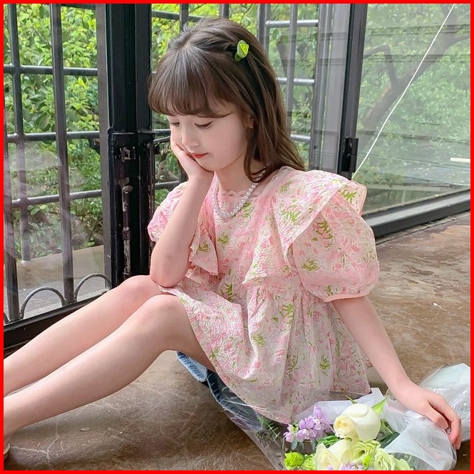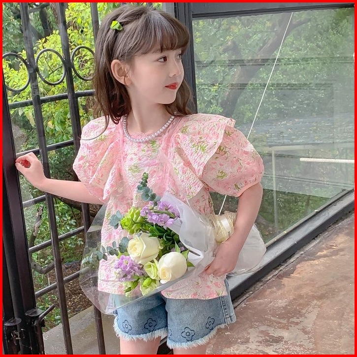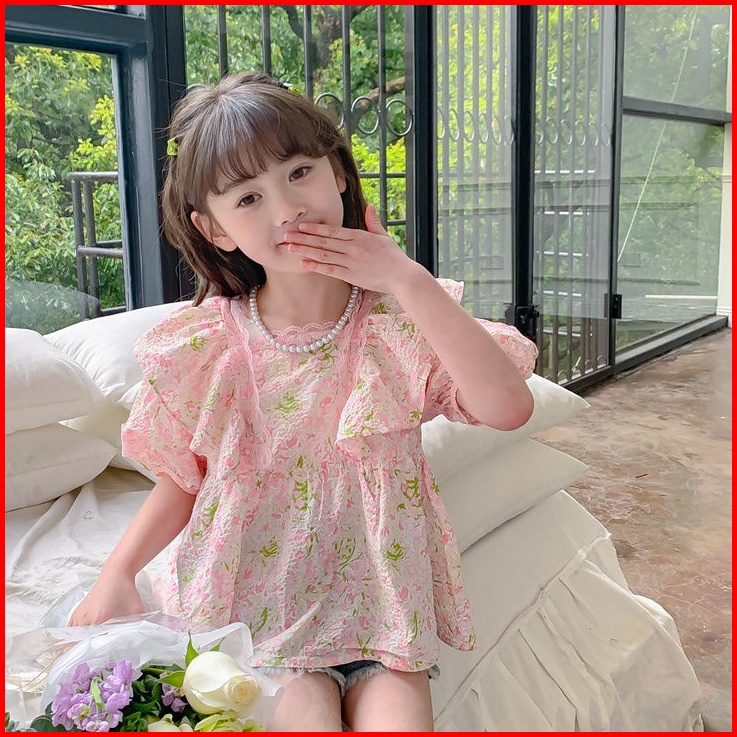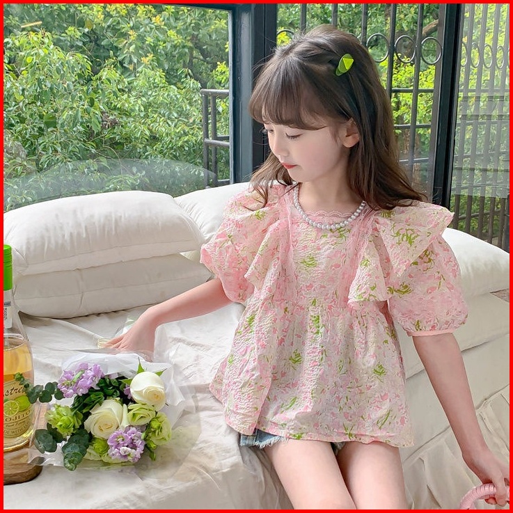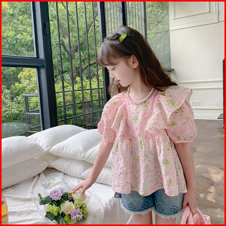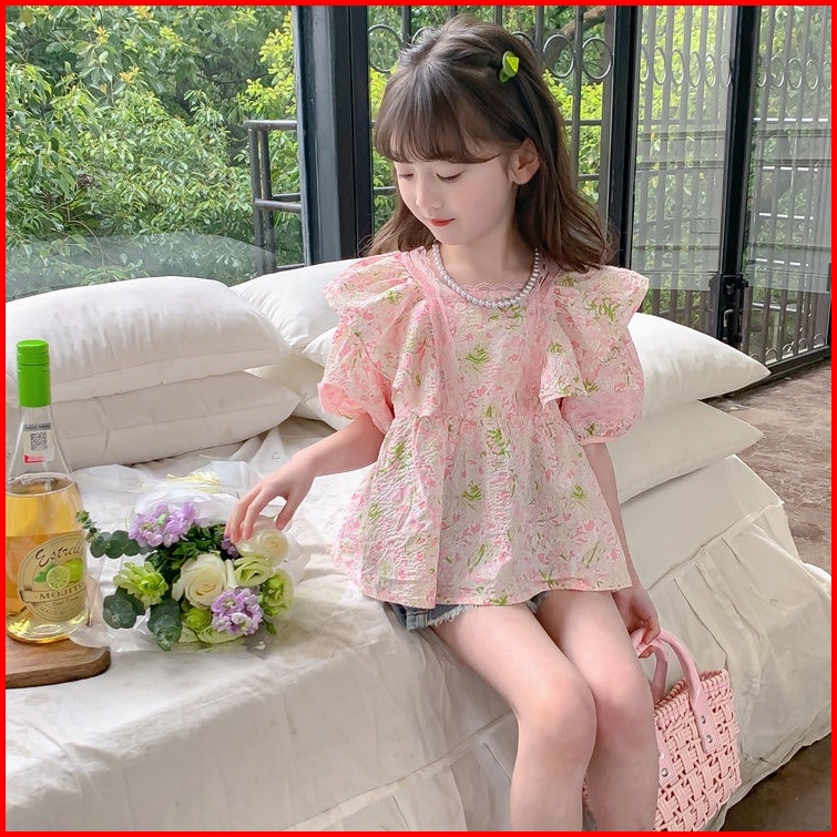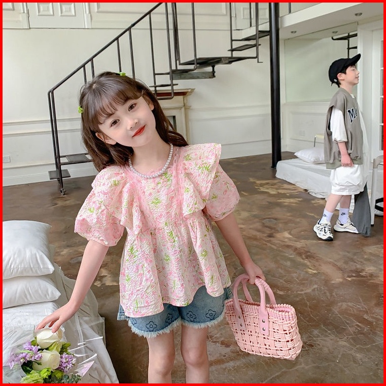 Honey.baby 1-9 Tahun Daisy Flower Blouse Baju Anak Perempuan Korea Style Lengan Pendek Gadis Cute Nyaman
