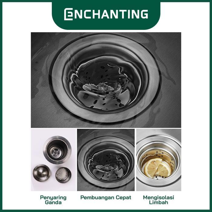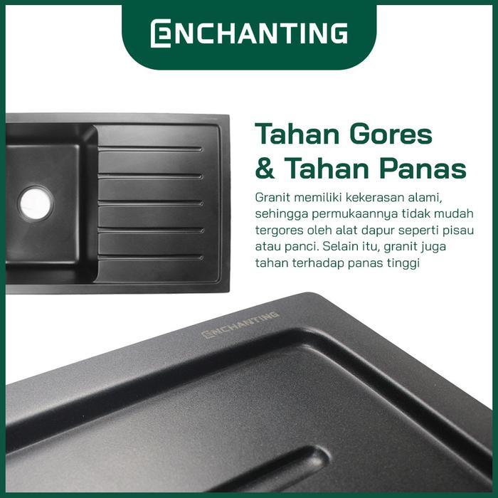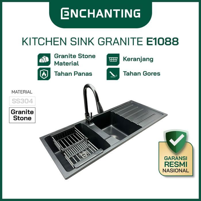 ENCHANTING Kitchen Sink Granite Stone 2 Bowl Black 115x50 Bak Wastafel Cuci Piring Dapur Tebal Paket