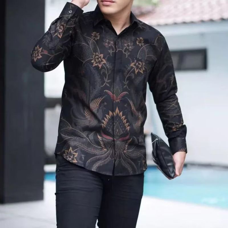 KEMEJA BATIK PRIA KEKINIAN LENGAN PANJANG M L XL XXL