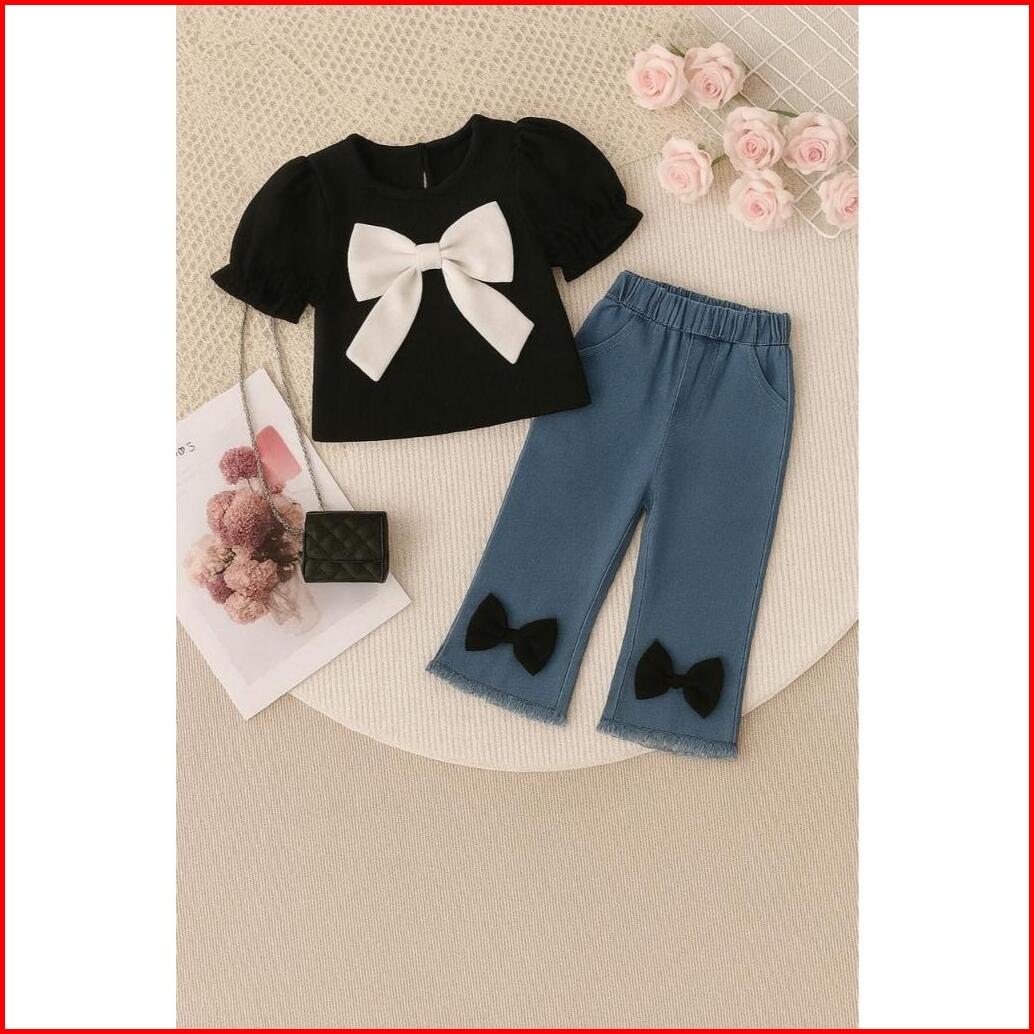Setelan Jeans Anak Perempuan Usia 1-5 Tahun Motif Pita Besar Lucu Terbaru