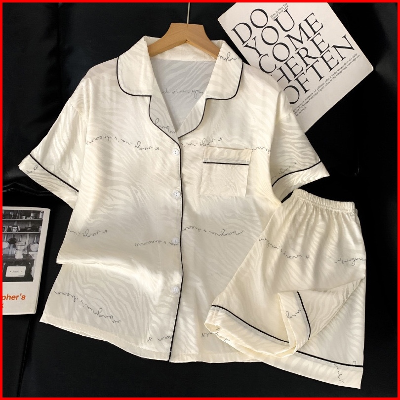 Ykl - Baju Tidur Wanita Satin Adem Lembut Piyama Setelan Set Cewek Kekinian Lengan Pendek