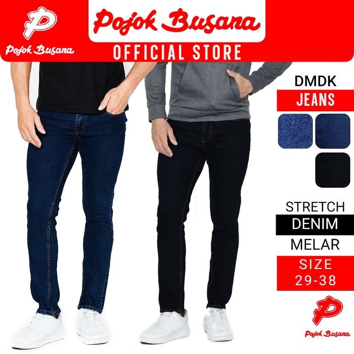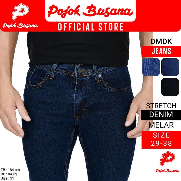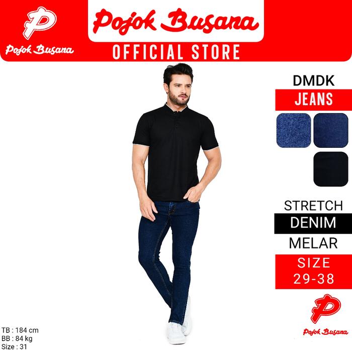 POJOK BUSANA CELANA PANJANG JEANS PRIA DMDK - CELANA DENIM JEAN COWOK HITAM BIRU - BLACK, 29