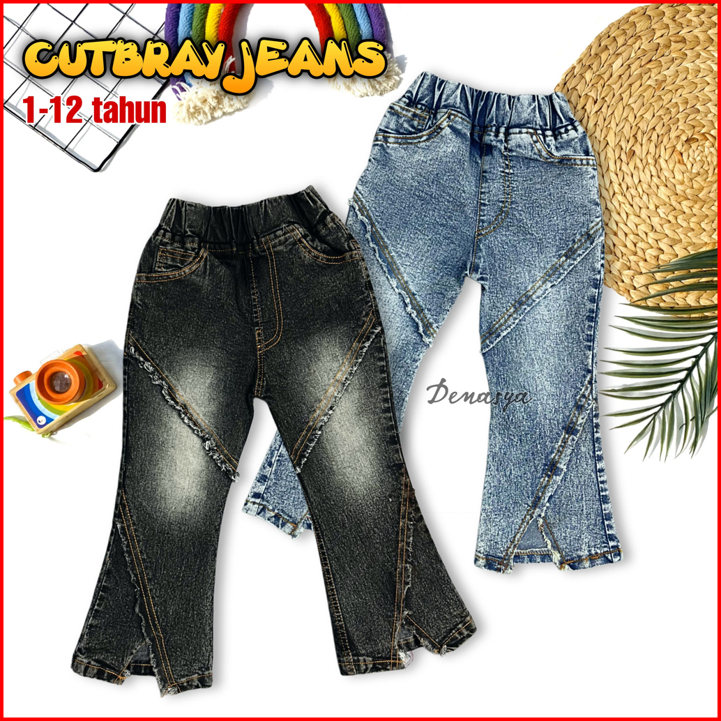 New Celana Jeans Anak Perempuan Cutbray Jeans Rawis Kekinian Usia 1-12 Tahun Terbaru