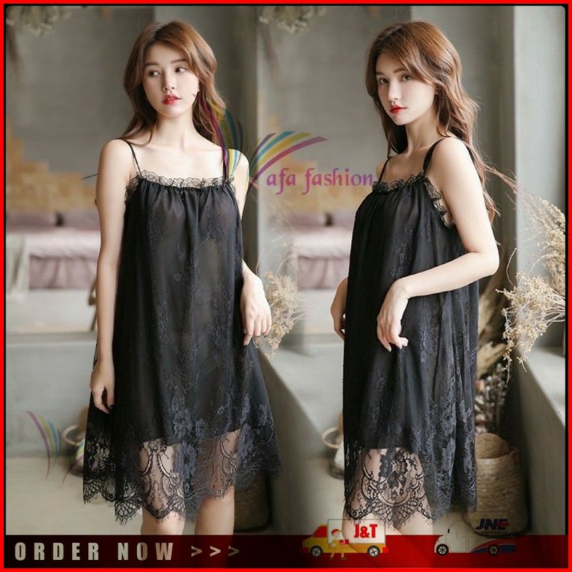 Afa Fashion Baju Tidur Wanita Korea Fashion Linggeri Sexy Mini Deep Piyama Women Sleepwear Set Cd