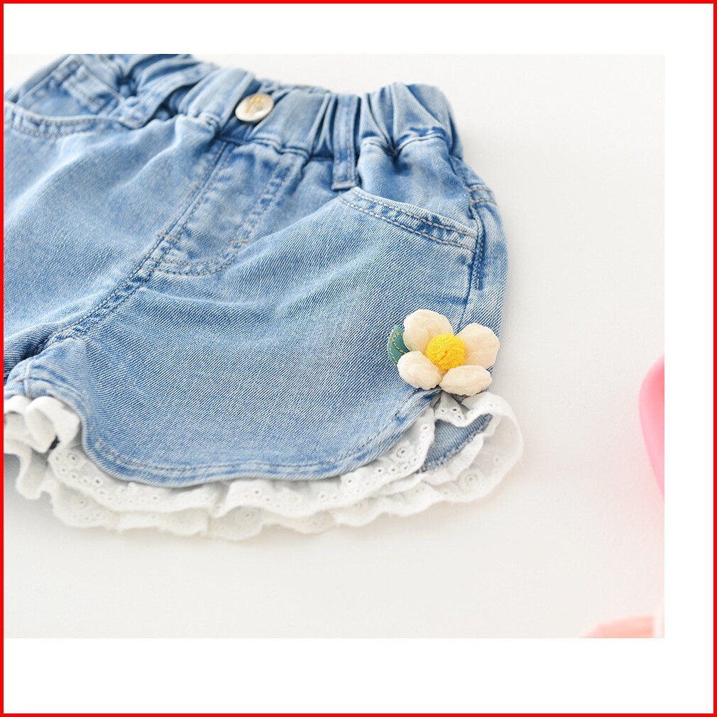 Celana Pendek Jeans Anak Perempuan Motif Bunga 3d Dan Model Renda