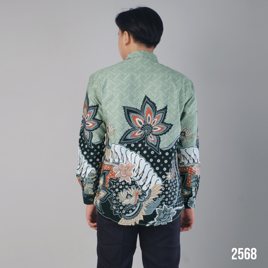 DGM Kemeja Batik Pria Panjang Ls Puring Premium Batik Furing Motif Kembang Nusantara Sage 047 G