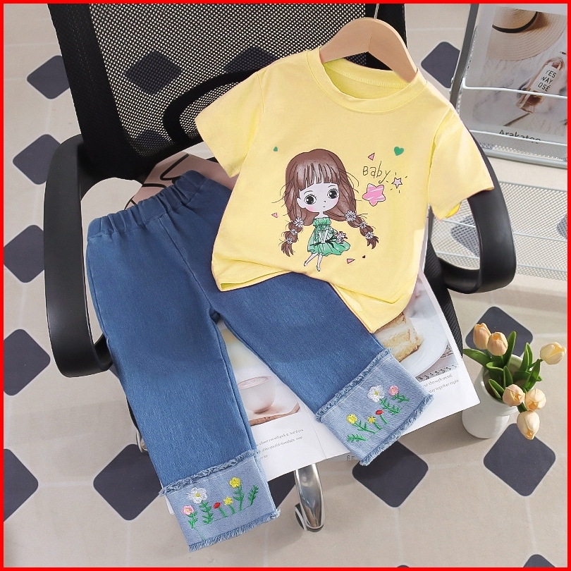 Setelan Anak Perempuan Kekinian Setelan Anak Perempuan Denim Jeans Usia 1 - 5 Tahun