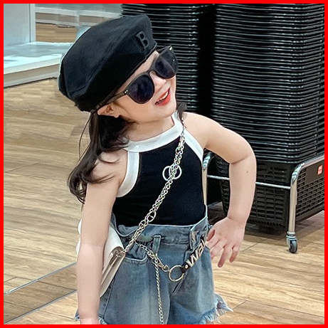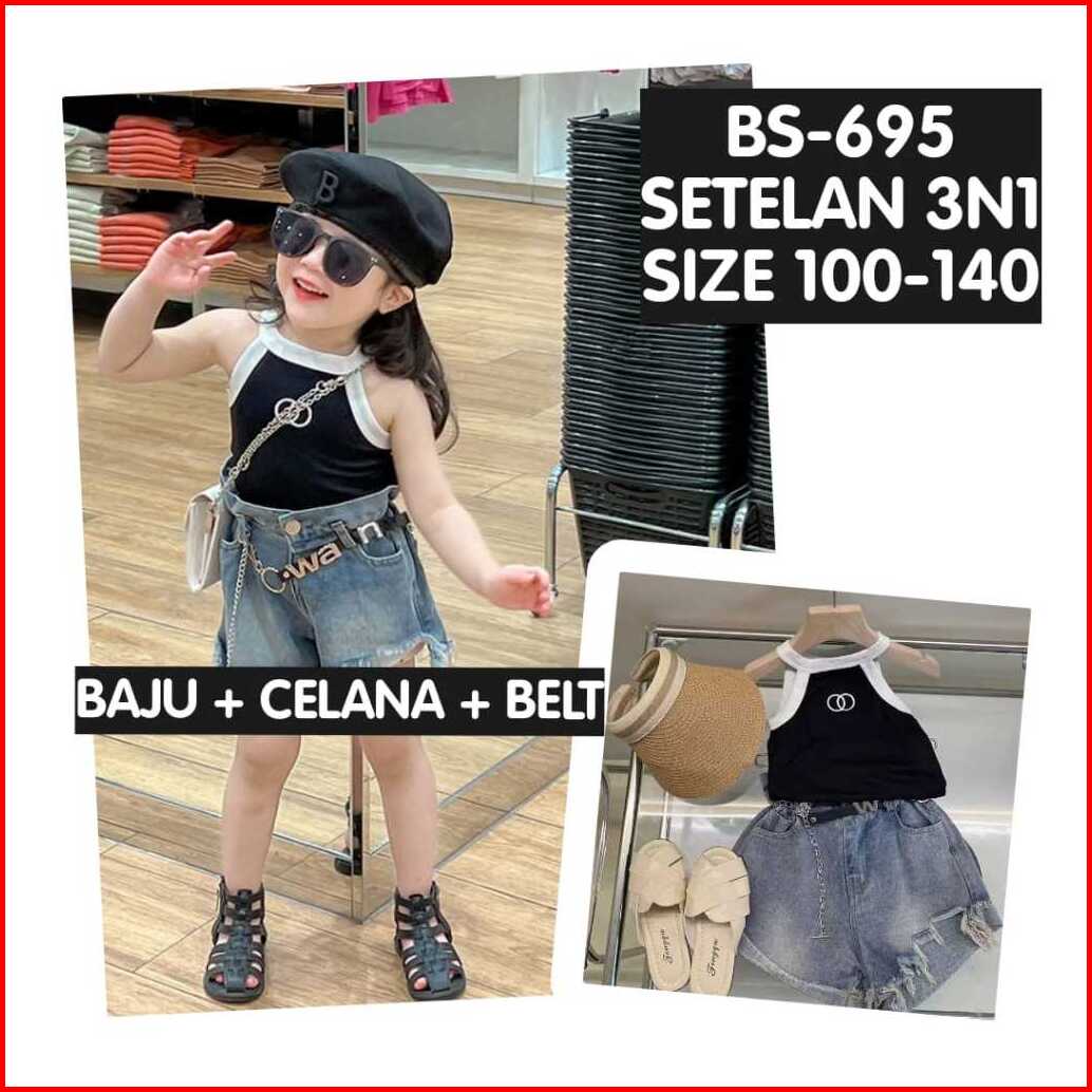 Loli-jkt Bs- 695 Setelan Anak Cewek Tanktop Celana Jeans Belt Wang Size 100-140