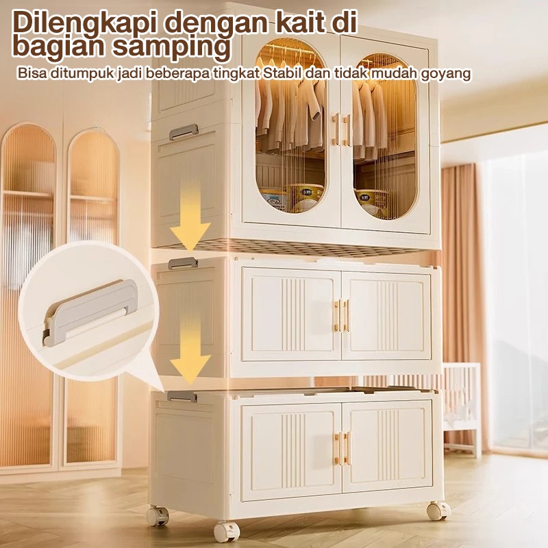 HOhome Besar Lemari Pakaian Plastik GANTUNG Lemari Plastik Susun Lemari Baju Plastik Lipat ada roda