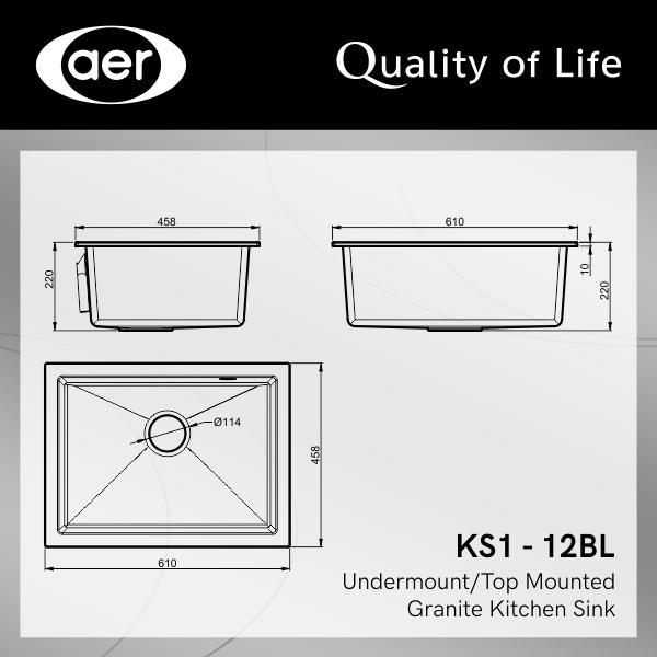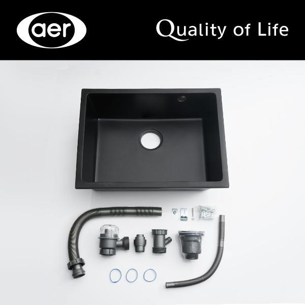 AER Bundling Kitchen Sink Bak Cuci Piring Dapur Granit 1 Bowl Black Hitam KS1-12BL + Kran Panas
