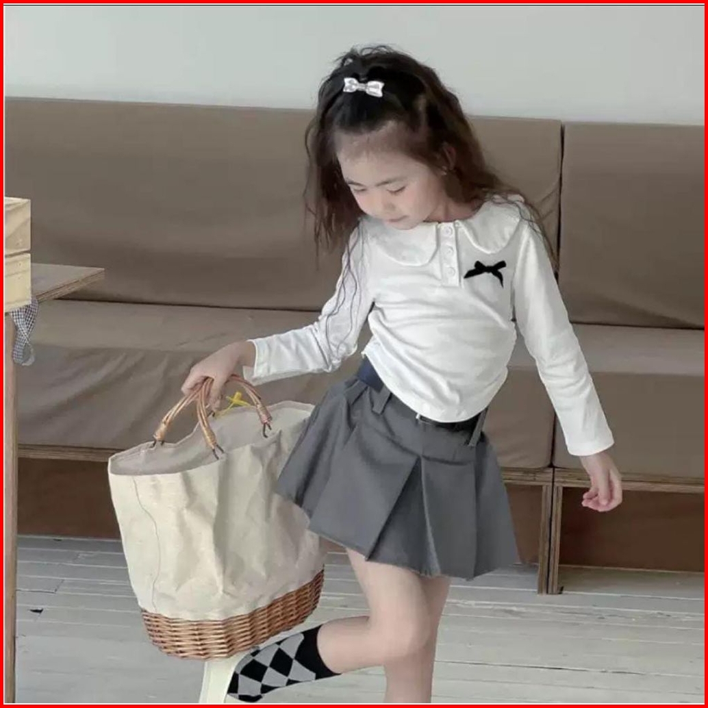 Blouse Anak Perempuan Katun Rib Krahdaun Pita 1-8 Thn