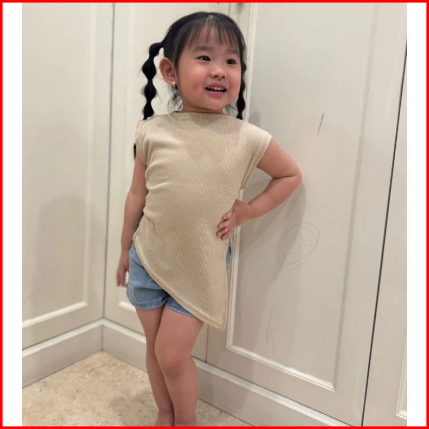 Luisa Blouse Rajut Anak Perempuan Korean Style - Outfit Casual Lucu Model Asimetris 46772
