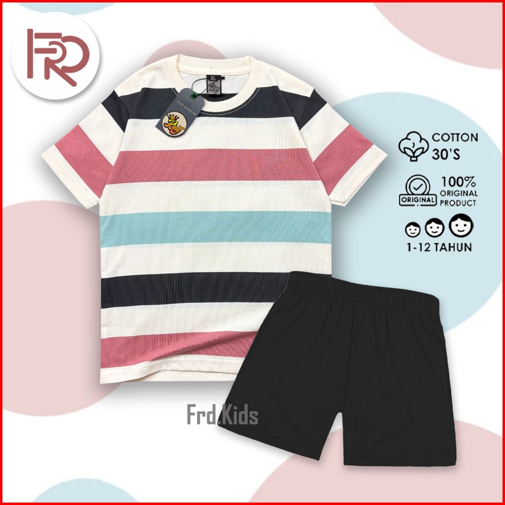 Frd.kids - Setelan Kaos Anak Laki Laki Kaos Salur Anak Laki Laki Kaos Salur Anak Perempuan Kaos Anak Katun Stripe Cvc 24
