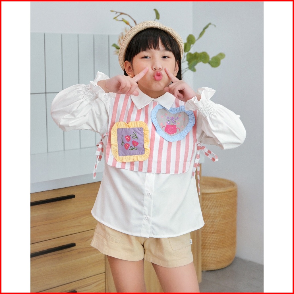 Gracie Stripe Shirt Hunny Bunny Kemeja Pastel Anak Perempuan Blouse Vest Girly Vintage