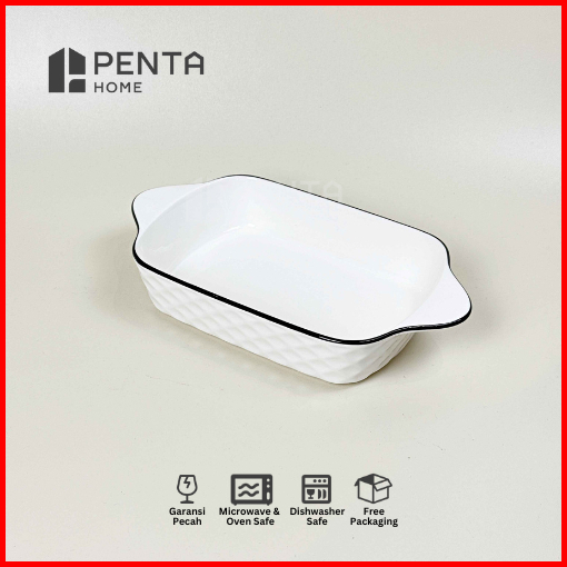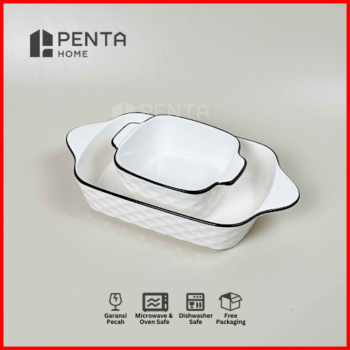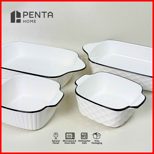 Penta Home Mangkok Porcelain Embossed Double Ear 6 10 Inch Textured White Diamond