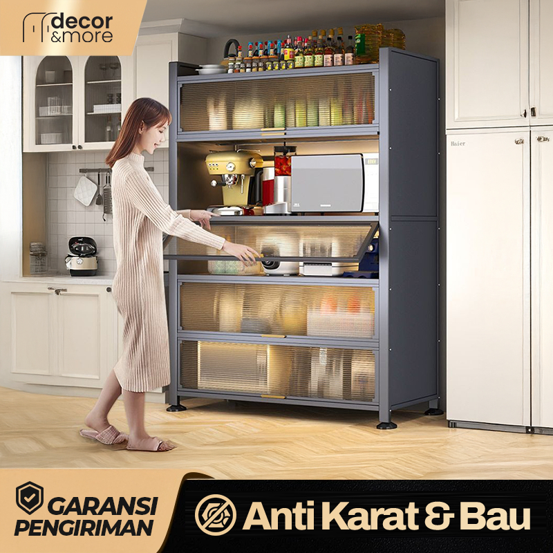 RAK PIRING DENGAN PINTU TERTUTUP LEMARI DAPUR LEMARI PIRING ESTETIK RAK DAPUR SERBAGUNA STAINLESS