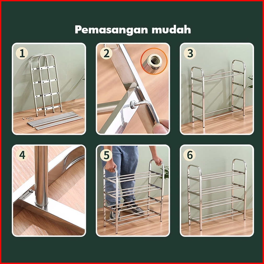 Homindo Rak Sepatu Stainless Rak Sandal Rak Stainless Kuat Anti Karat 3 Dan 4 Susun Serbaguna