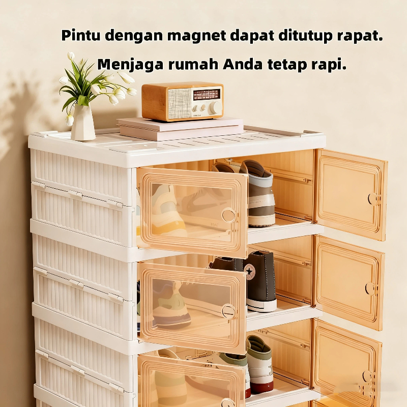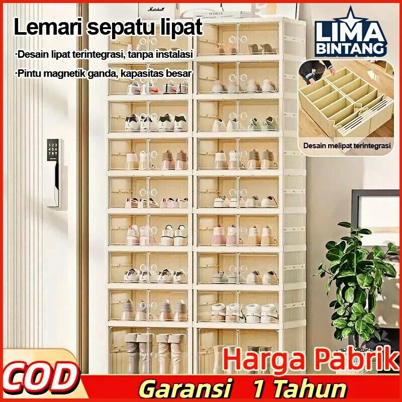 [Harga Pabrik]LIMA BINTANG Kotak Penyimpanan Sepatu Tanpa Instalasi Gratis, Lemari Sepatu Lipat