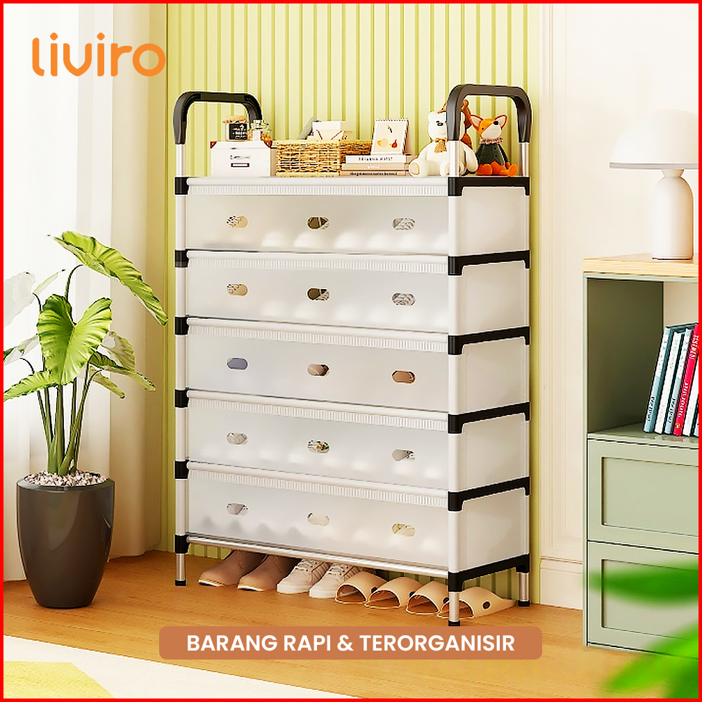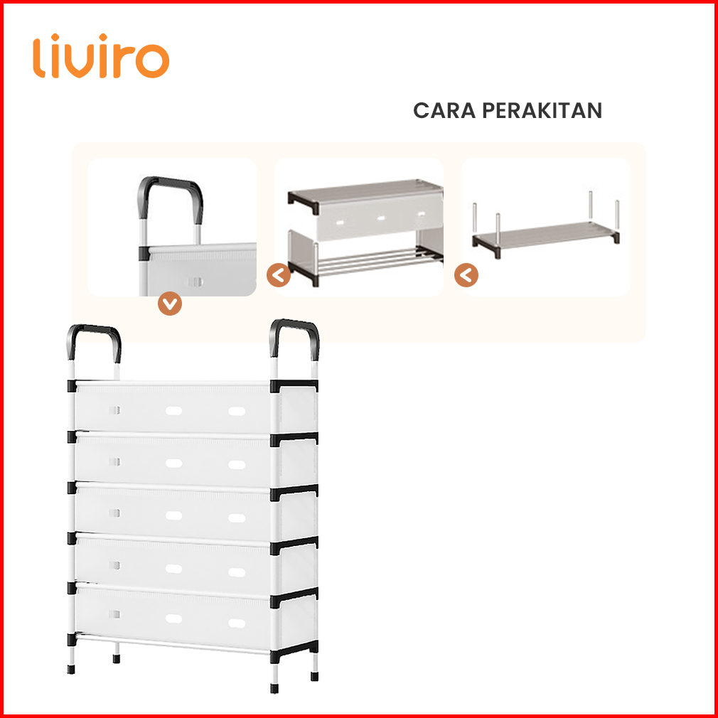 Liviro Rak Sepatu Modern Minimalis Anti Debu 6 Susun Rangka Stainless Kuat