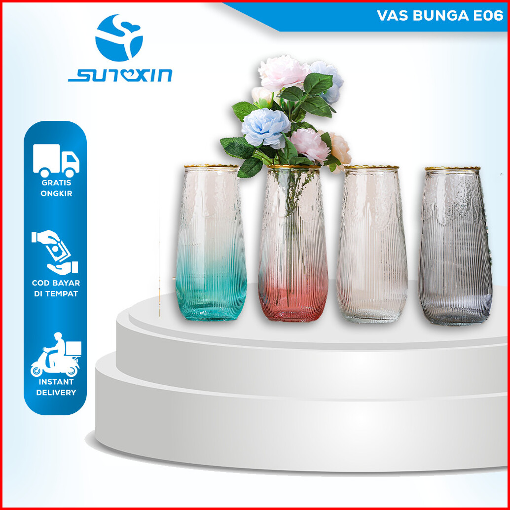 Sunxin Vas Bunga Kaca Bening E06 Vas Kaca Tinggi Bambu Vas Bamboo Vas Tanaman Air
