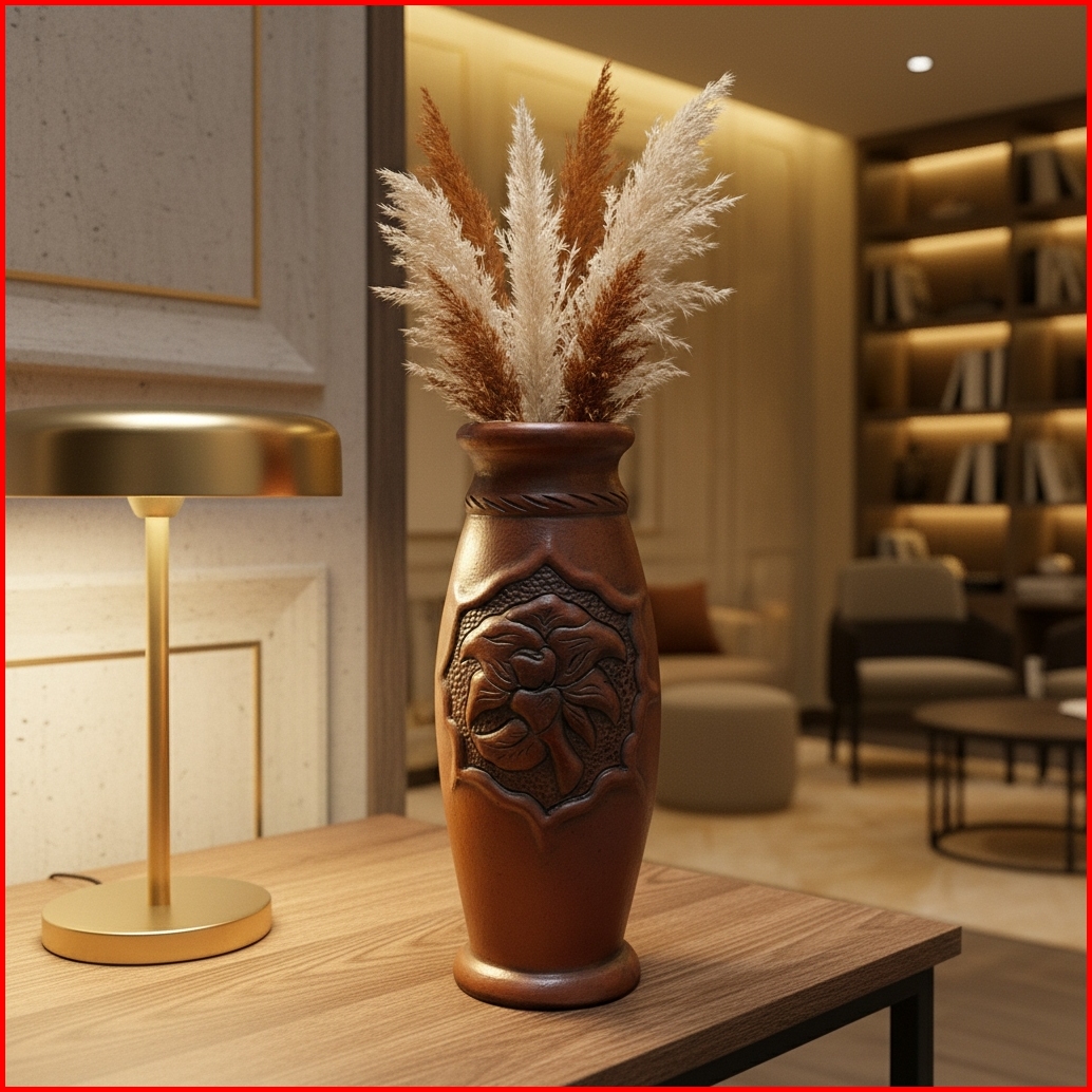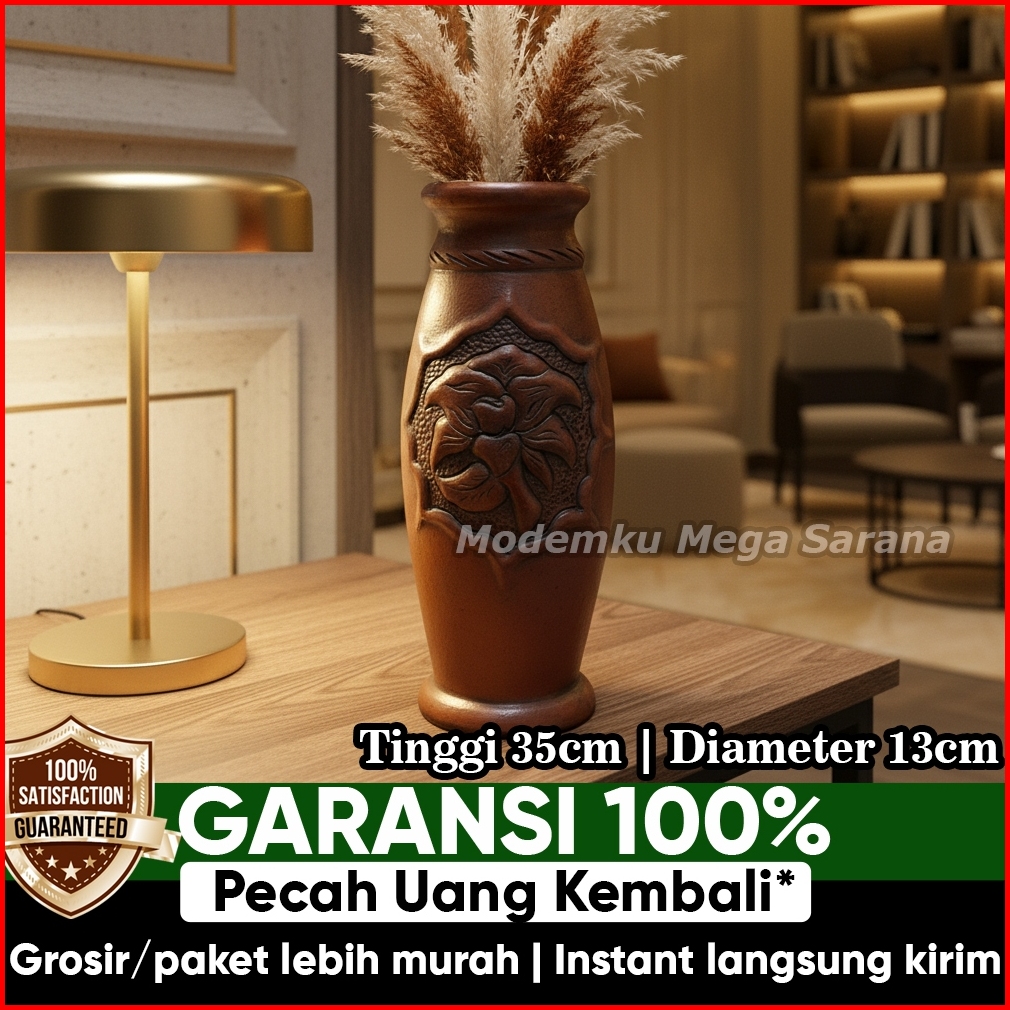 Vas Bunga Gerabah Ukir Bunga Timbul 35 Cm Vas Hias Tanah Liat Dekorasi Rumah Model Bumbung