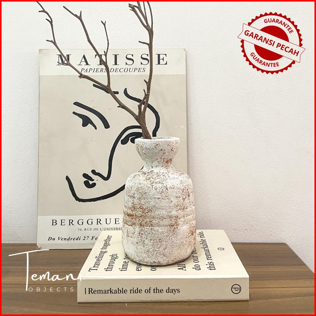 Temani Objects- Vas Bunga Putih Rustic Gale Vase Bunga Cantik Dekorasi Bunga Estetik Nordic Vase