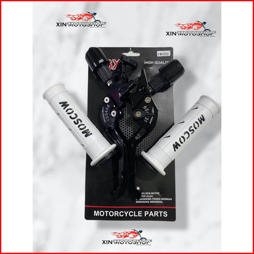 Paket 3in1 Handgrip Sisik Jalu Stang Cnc Handle Stelan Cnc Mio Vario Beat Rk King Vixion Aerox Pcx Adv N-max Mio J Vario
