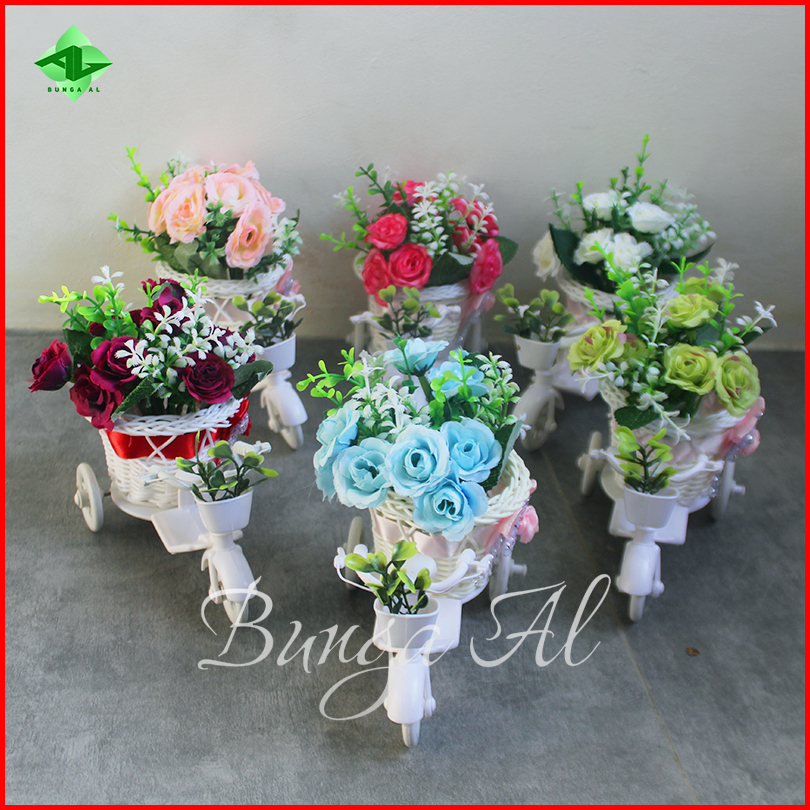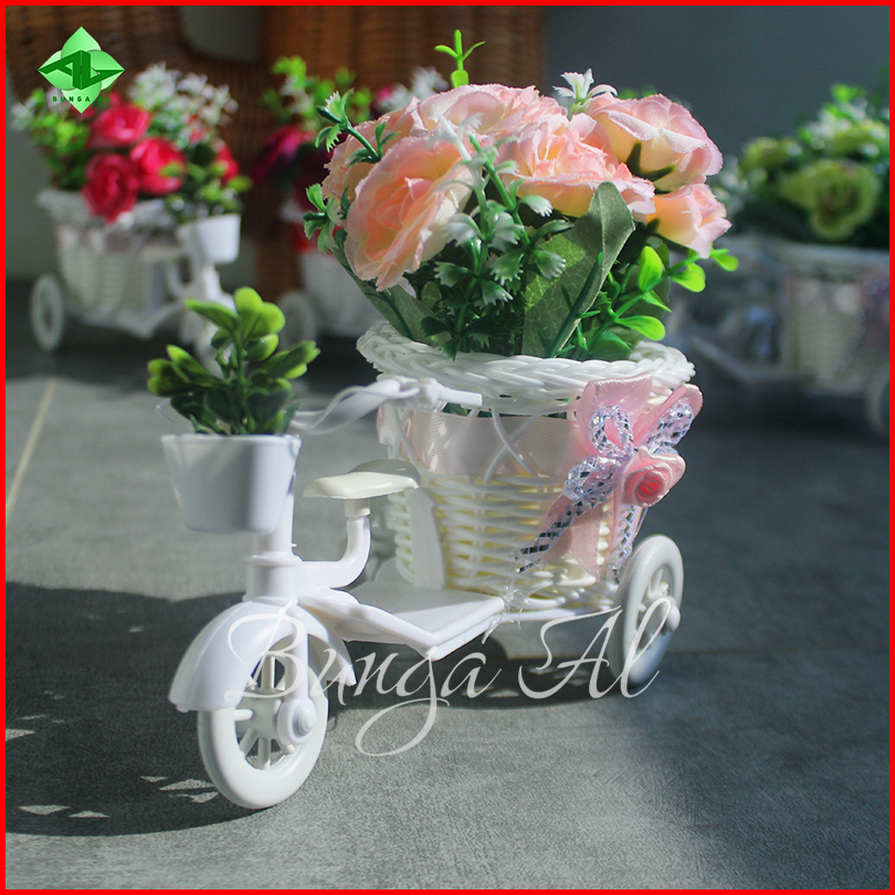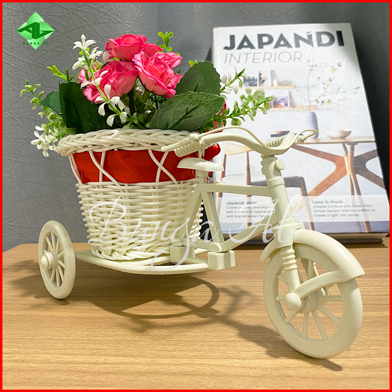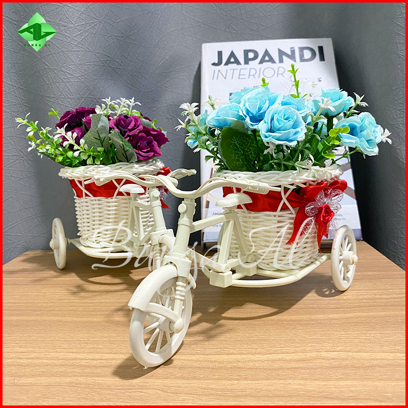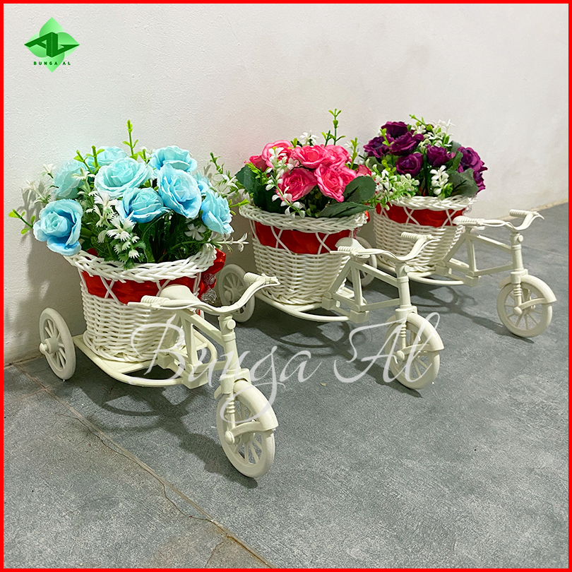 1 Paket Rangkaian Bunga Mawar 8032 Vas Sepeda Mini Bunga Artificial Hiasan Ruang Tamu Meja Rb6007