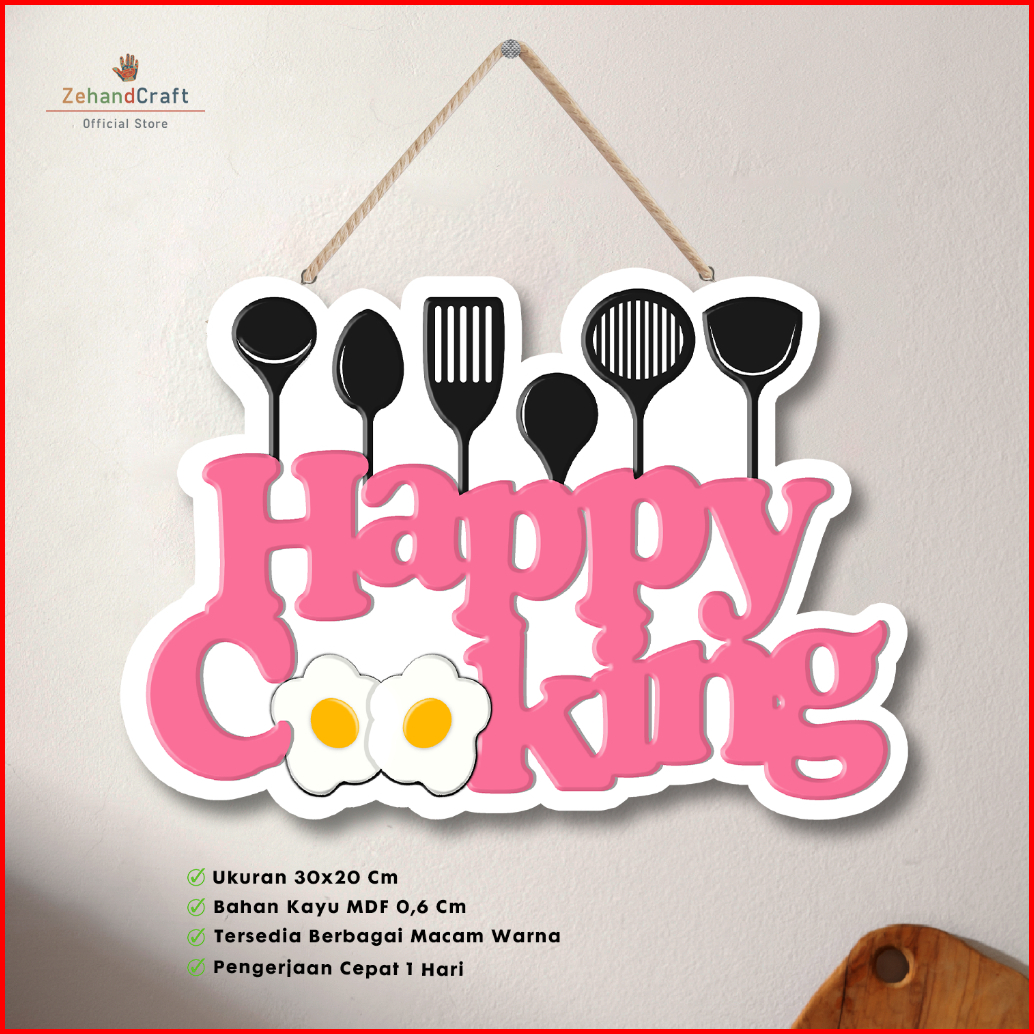 Zehandcraft - Hiasan Dinding Happy Cooking Ukiran Kayu 30x20 Cm