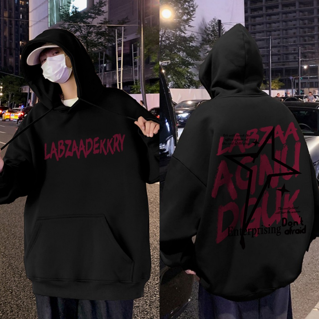 Disneay Hoodie Boxy Pria | Merah Alphabet Pattern Graffiti Cetak Pola | Amerika Street Style Tebal Putih Sweater Vintage