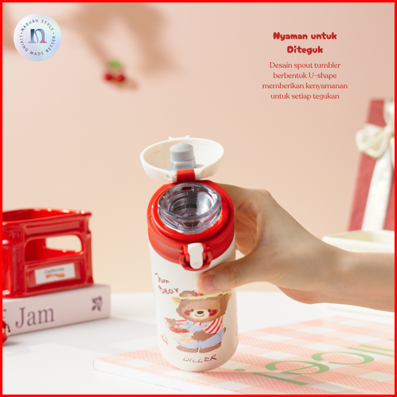 Nabubu Botol Minum Cherry Jam Bear Slim 480ml Tumbler Stainless 316 L Tumbler Lucu Anti Tumpah