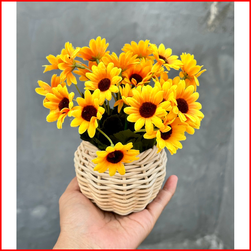 Bunga Mawar Mini Plastik Vas Rotan 15cm