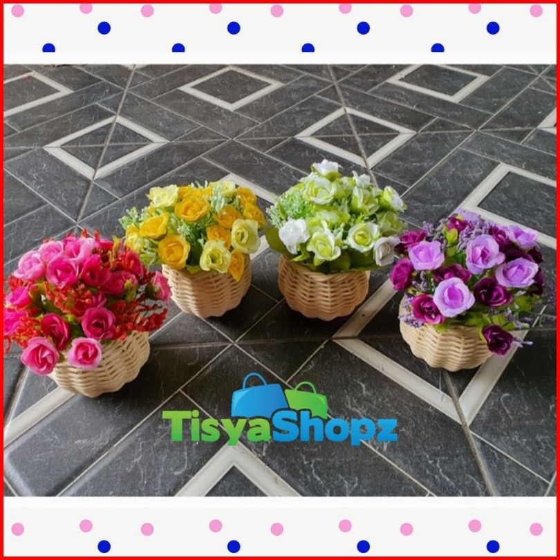 Putih, Ungu, Fanta, Kuning, Tea Rose Oren, Tea Rose Ungu, Tea Rose Pink, Tea Rose Fanta, Tea Rose PutihMerah, Pearl bud+ Rotan, Matahari Mini, Mawar Kuncup Oren x7